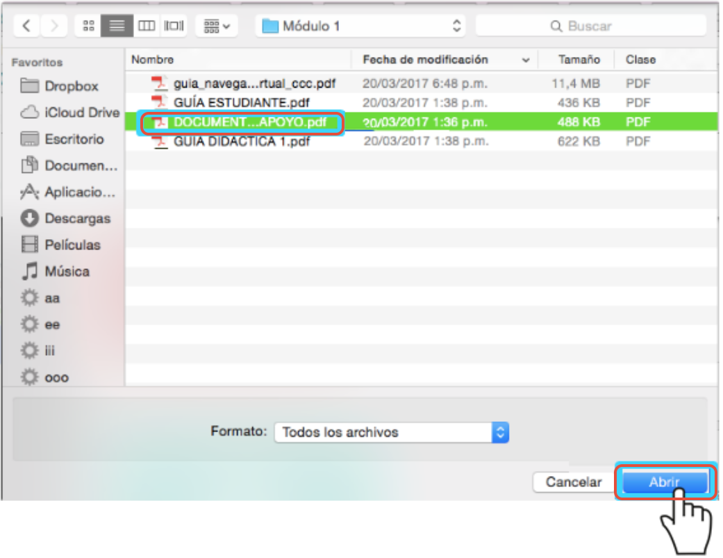 5. Debes ubicar en yu computador el archivo que vas a cargar y confirmar la acción con el botón Abrir.