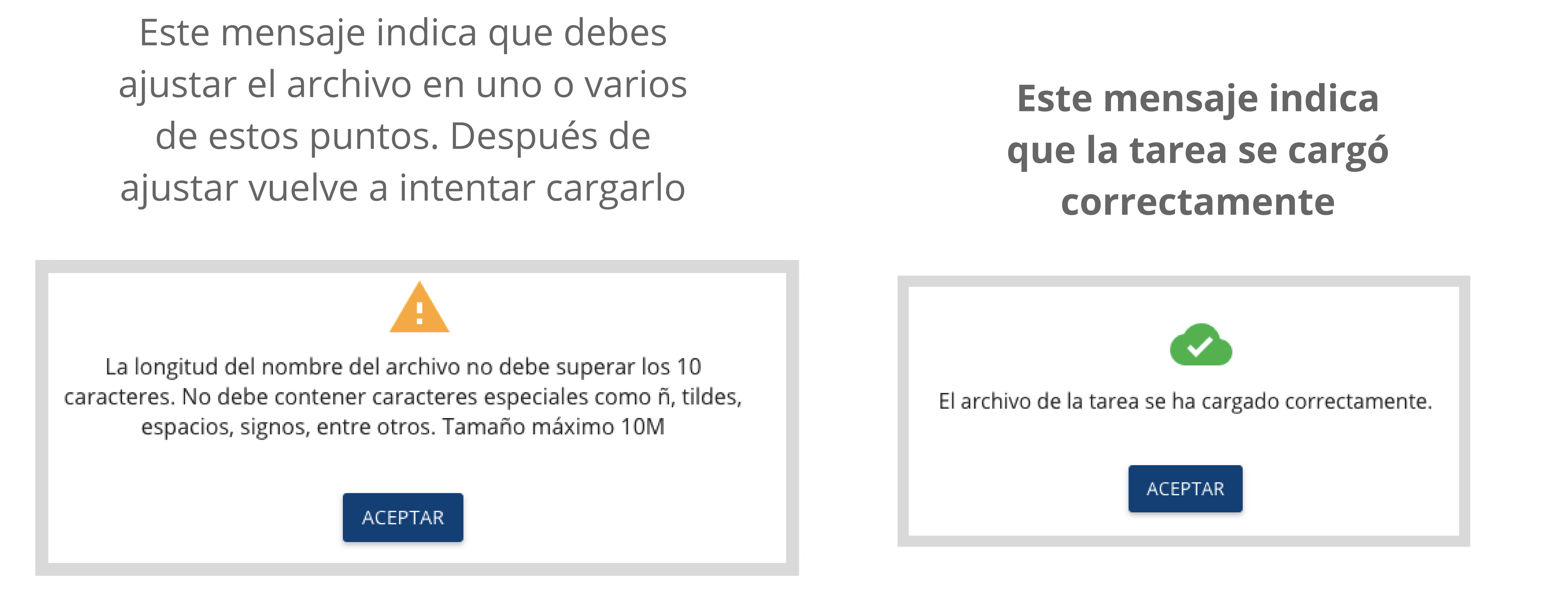 | Nota: Recuerda que el nombre del archivo que adjuntes no debe tener ni espacios, ni ñ, ni tildes. Además no debe tener mas de 30 caracteres en su nombre y no debe superar los 30 MB de tamaño. |