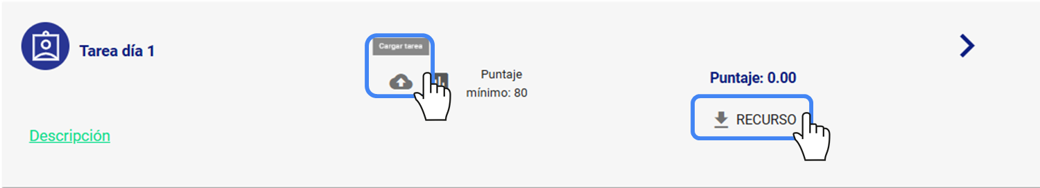- Descargar el material instructivo o de ayuda asociado por el administrador o tutor de la plataforma a través del botón "Recurso". Ten en cuenta que no todas las tareas tienen este material de apoyo asociado.